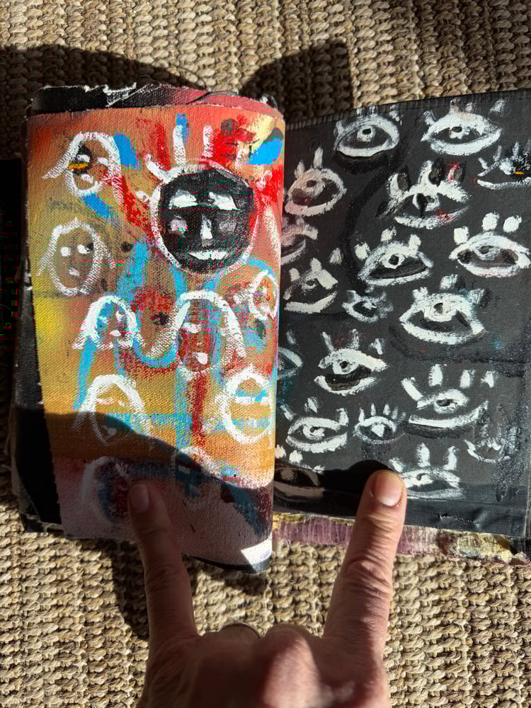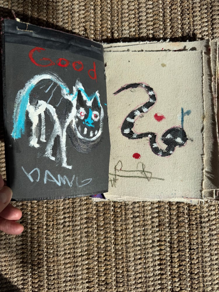 Handmade book with 20 canvas pages 6 x 8 inches approximately irregular) including the covers with oil paintings on them. Free shipping in USA lower 48