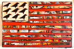 24" x 36" x 2" signed original oil painting on stretched canvas with canvas strips from repurposed paintings. Ready to hang! Shipping is free in continental US, outside of that send us a DM and we'll give you a shipping quote!