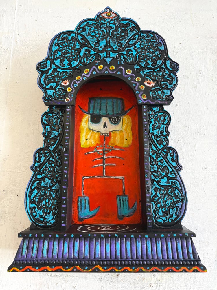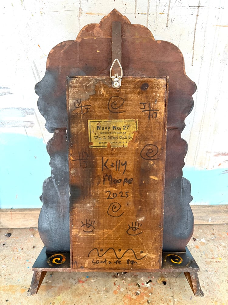 24” x 15” x 5” signed original oil painting on an antique table clock found in my family’s barn. Hanger on back so you can hang on wall but can also free stand on a table or mantel.