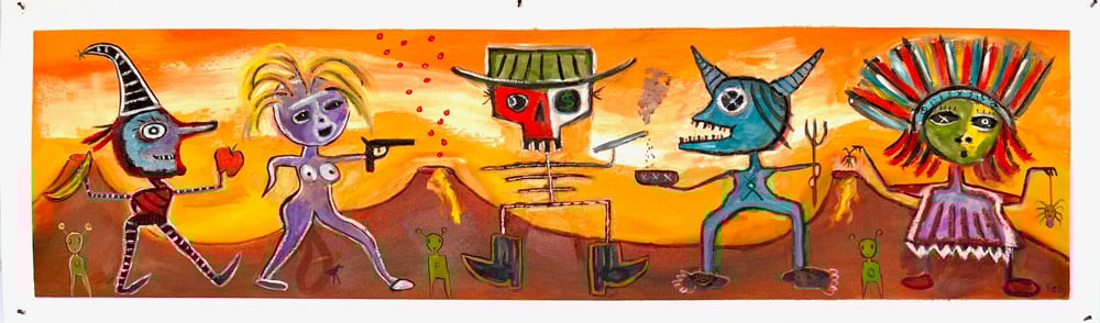 Approximately 64” x 20” signed original oil painting on loose canvas. Measurement includes an approx. 2” white border. You can hang as is like a tapestry (I use carpet tacks) or can take to your local frame shop or Michael’s to have it stretched or framed.