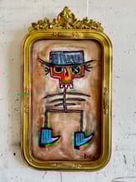 26” x 14.5” signed original oil painting on board in cool vintage gold frame.