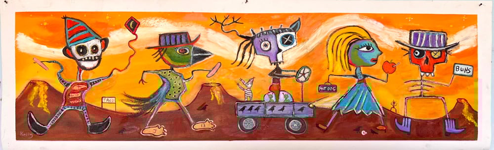 Approximately 64” x 20” signed original oil painting on loose canvas. Measurement includes an approx. 2” white border. You can hang as is like a tapestry (I use carpet tacks) or can take to your local frame shop or Michael’s to have it stretched or framed.