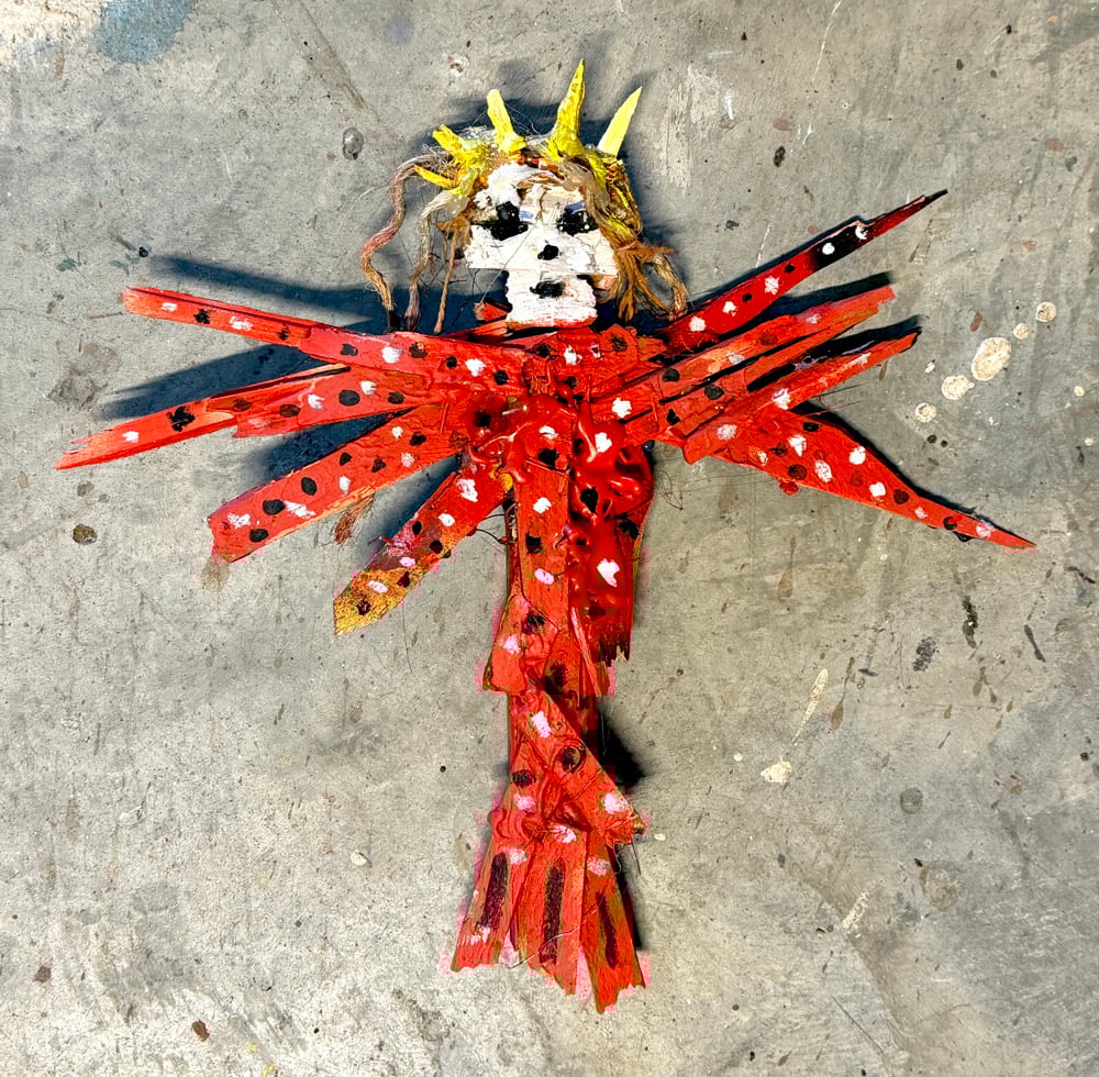 Approximately 12” x 12” found wood sculpture with oil paint, signed original!
