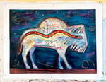 Approximately 54” x 42” signed original oil painting on loose canvas, which you can hang as is like a tapestry or take to Michael’s or your local frame shop for stretching. Has an approximately 3” white border which is included in measurements.