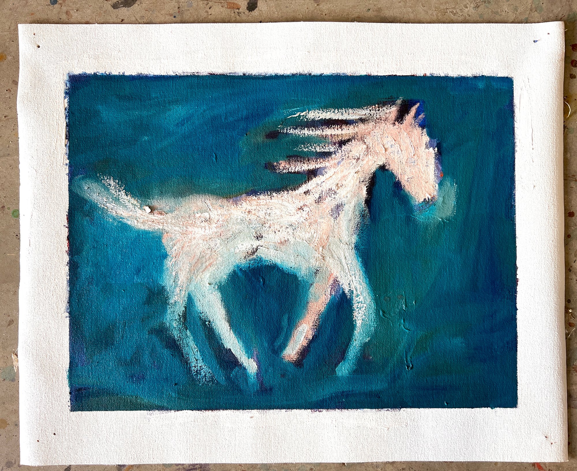 Approximately 15 ” x 19” signed original oil painting on loose canvas. Measurement includes an approx. 2” white border. You can hang as is like a tapestry (I use carpet tacks) or can take to your local frame shop or Michael’s to have it stretched or framed.